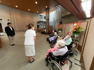 中野区長の訪問がありました。新100歳の方々に祝辞とお花が贈られました。